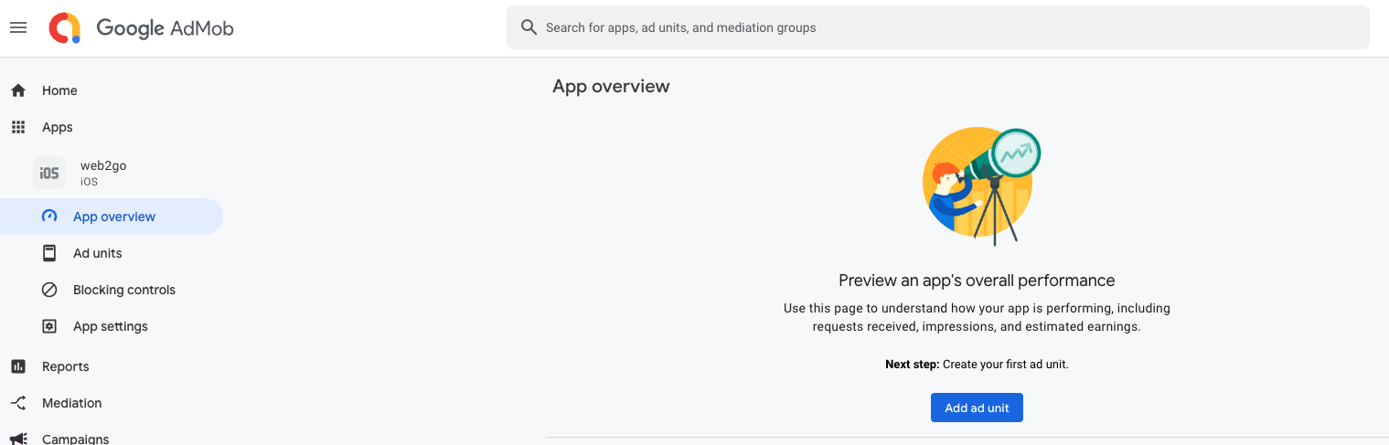 The Ads Setup section in the Web2Go Admin Panel gives you full control over AdMob advertisements in your mobile app—without needing to touch the app code. You can enable or disable ads, set ad unit IDs, and manage both Android and iOS ad configurations.
