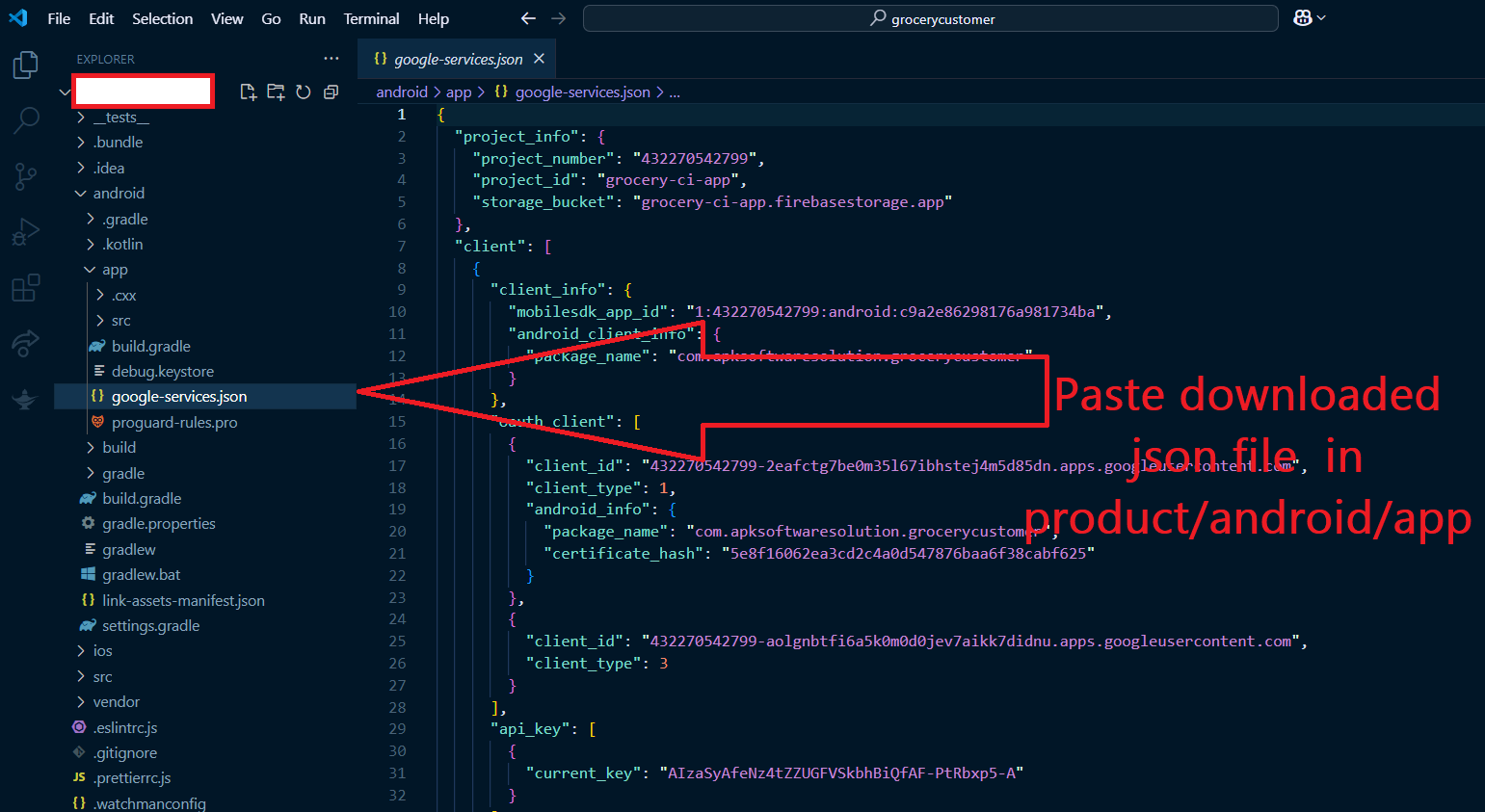 google-services.json file into these path