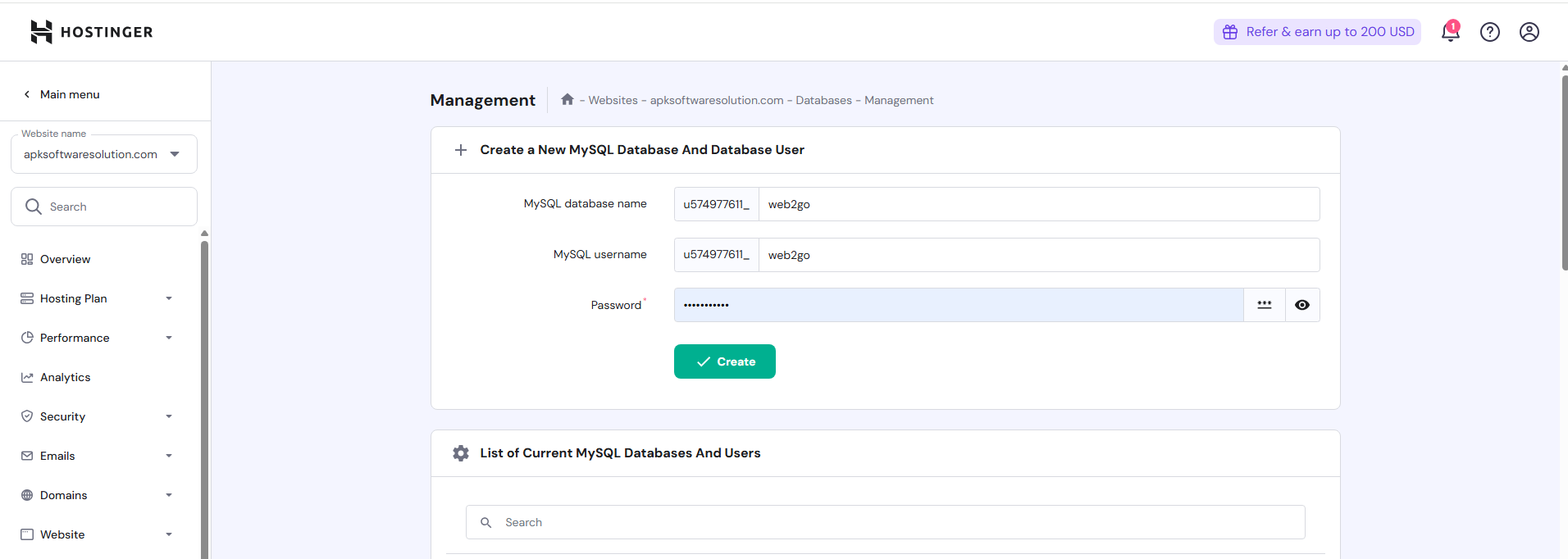 database credentials in the