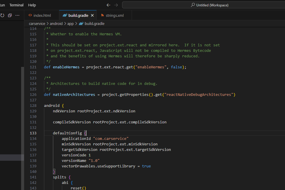 build.gradle find defaultConfig as heading