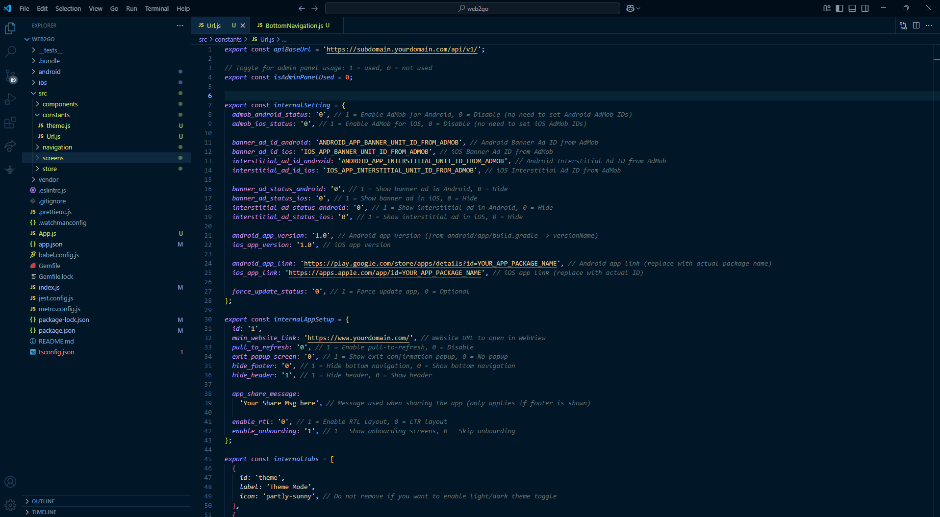 In the same URL.js file, locate the variable