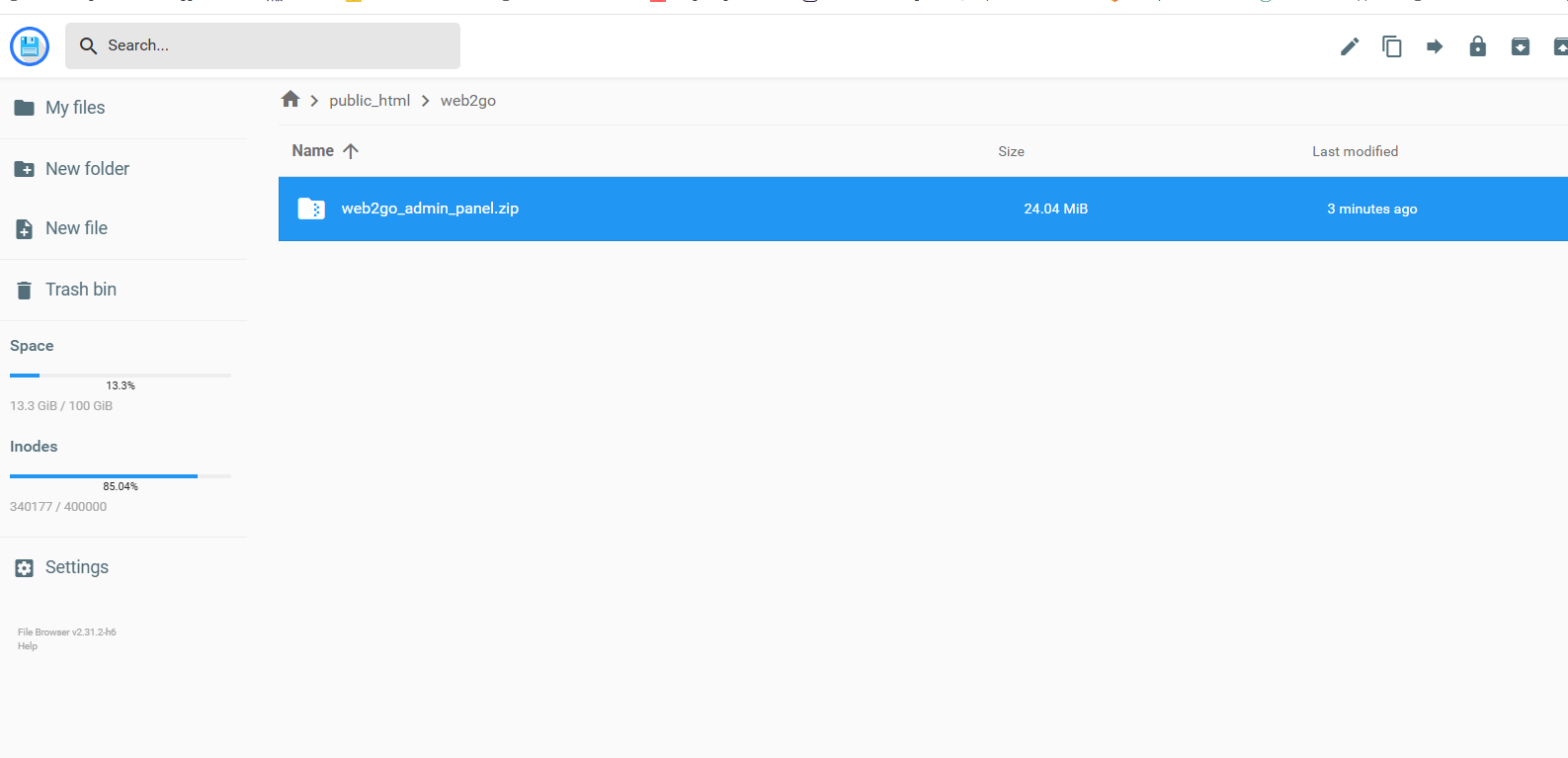 • Upload the web2go_admin_panel.zip file directly to your server after purchase to begin setup.